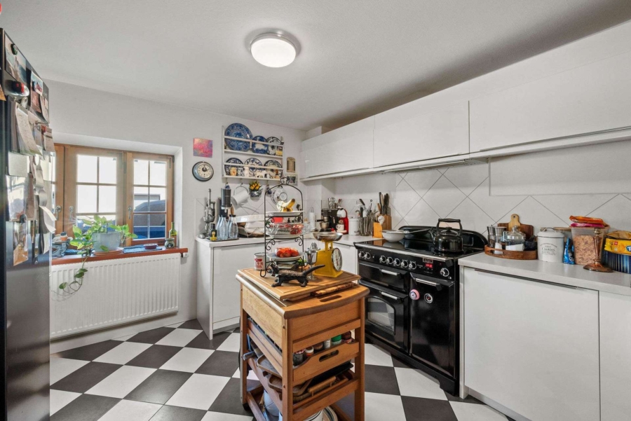 2008 wurde eine neue Einbauküche eingebaut und ab 2015 mit einem großen Herd von Falcon und allen erforderlichen Küchengeräten ergänzt.