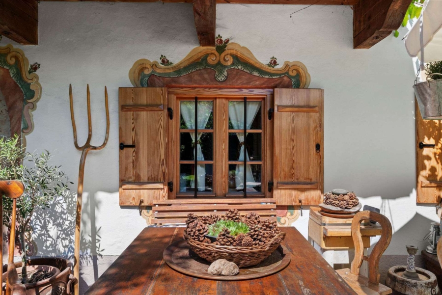 Der historische Dachfirst, die reich bemalten Pfettenkopfunterseiten aus dem Jahre 1813, das steinerne Türgewände aus dem Jahre 1696 und das Fenster in der Speisekammer stehen unter Denkmalschutz. Die Fensterumrandung und die Portalrahmung sind mit Lüftlmalerei geschmückt und geben dem Bauernhaus seinen einzigartigen Charakter.