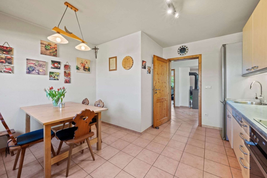 Im Kellergeschoss befindet sich der Versorgungsraum, der Waschraum und drei weitere große Abstellräume. Die Heizung, eine Wärmepumpe mit Flächenkollektoren im Garten, sorgt für gemütliche Wärme im kompletten Haus. Für eine PV-Anlage wurde schon ein Leerrohr bis unters Dach vorbereitet. Alle Räume werden mit Fußbodenheizung beheizt.
