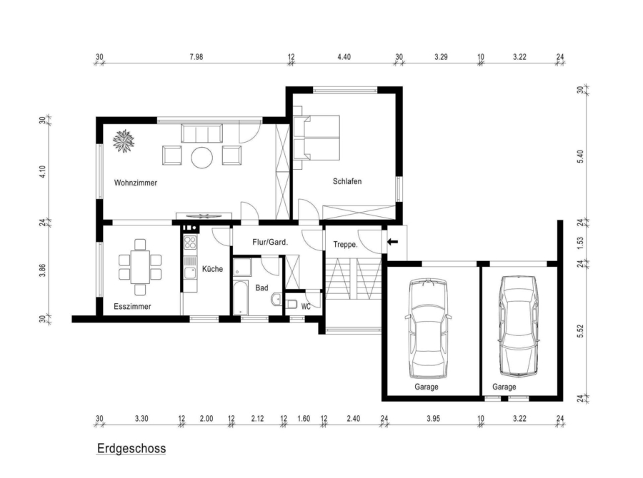 Genießen Sie den großzügigen Garten, der Platz für Entspannung und Freizeitaktivitäten bietet. Eine Doppelgarage sowie ein Außenstellplatz stehen Ihnen ebenfalls zur Verfügung.