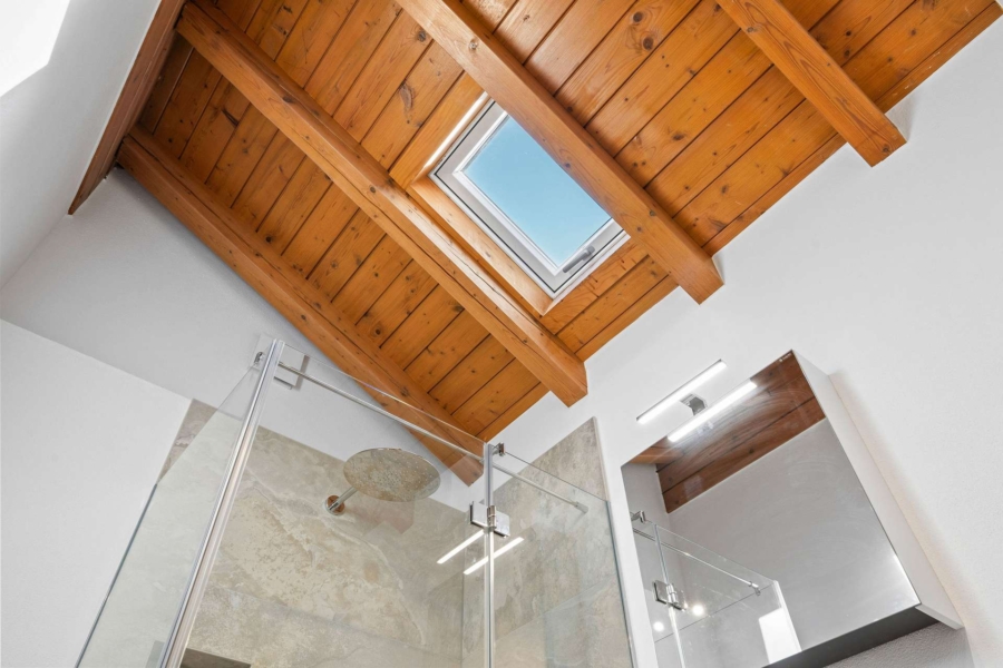 Das großzügige Schlafzimmer bietet viel Platz und einen Balkonzugang. Das Tageslichtbad ist mit einer Dusche ausgestattet und wirkt durch das Fenster freundlich und hell.