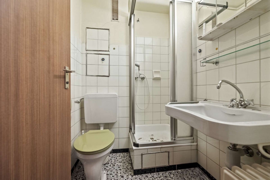 Die Wohnung liegt im Erdgeschoss und ist derzeit sanierungsbedürftig, bietet jedoch genau dadurch großes Potenzial für eine individuelle Neugestaltung. Der einfache Ausstattungsstandard mit Fliesen- und Teppichboden lässt Raum für Modernisierung nach persönlichem Geschmack.