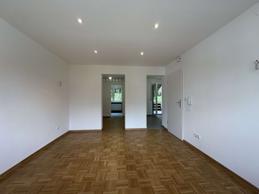 Herzstück der Wohnung ist das großzügige Wohnzimmer, das durch neue, dezente Deckenspots ein modernes und zugleich wohnliches Ambiente erhält.