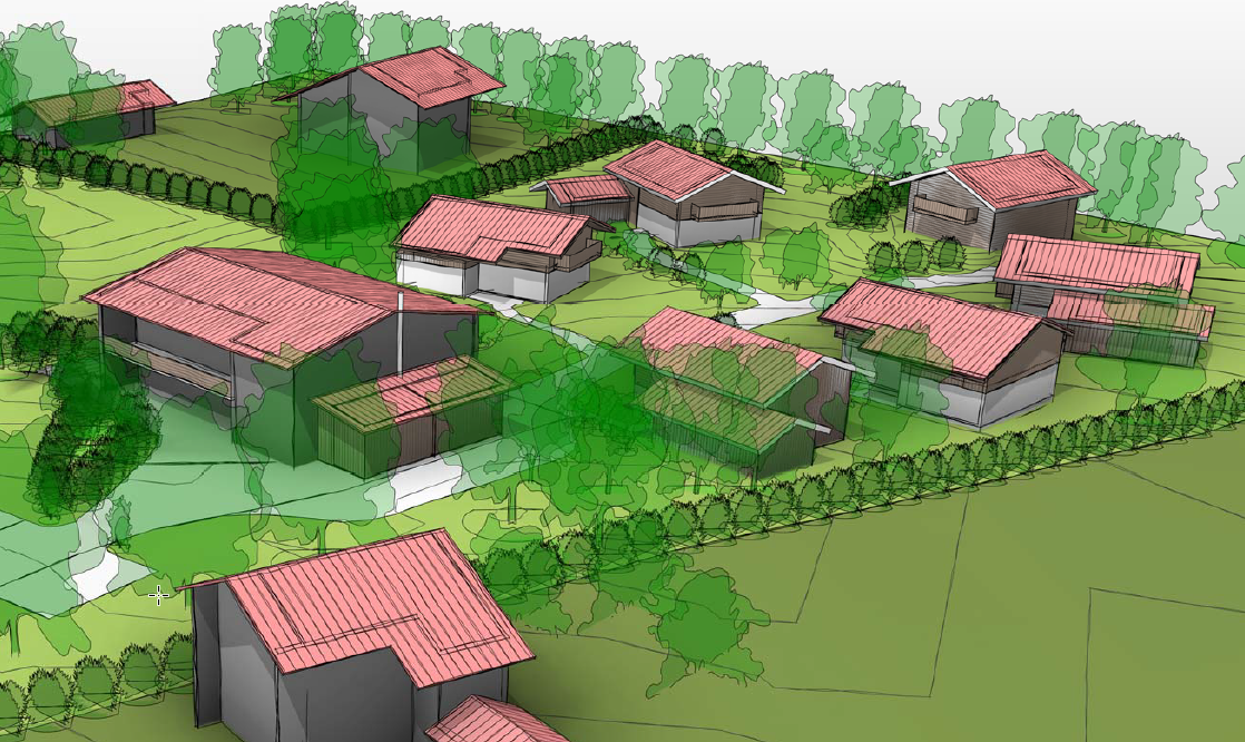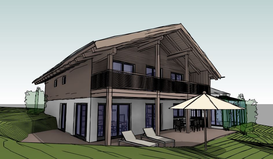 Für ein großzügiges Grundstück in den Bayerischen Alpen durften wir die Planung eines anspruchsvollen Ferien- und Veranstaltungsensembles übernehmen. Das Konzept umfasst die Sanierung des bestehenden Hauptgebäudes mit modernen Veranstaltungs- und Konferenzräumen sowie einer Cateringanlage, die Errichtung von sechs Ferienchalets mit variabler Nutzung und den Bau einer Energiezentrale zur effizienten Versorgung des gesamten Areals.