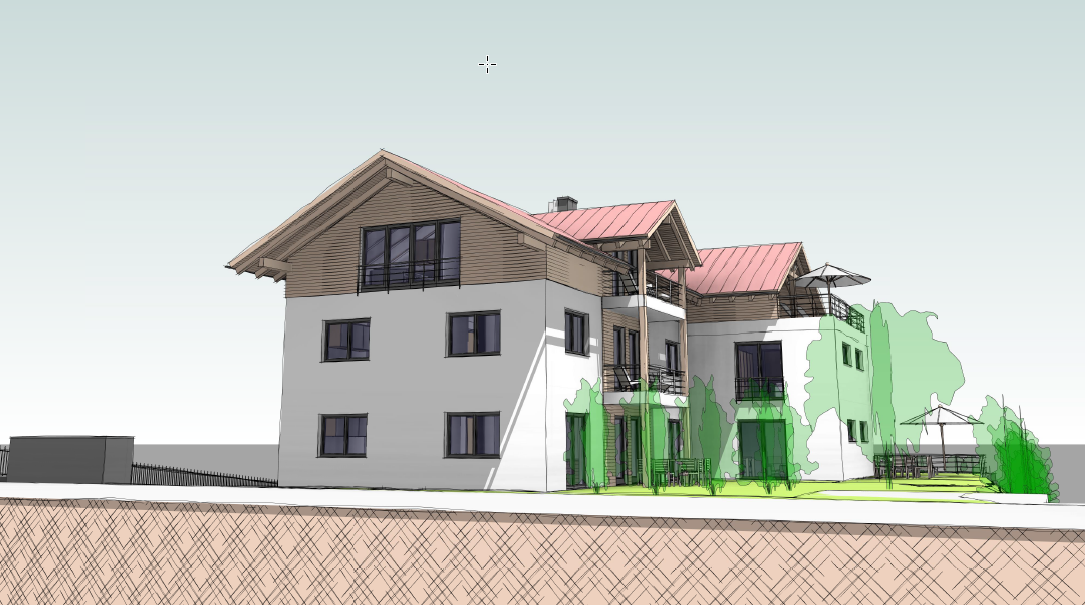 Dieses Wohnhaus bietet viel Platz und zwei großzügige Wohnungen in typischem Chiemgauer Stil. Die Architektur orientiert sich am klassischen Einfirsthof und setzt auf viel Holz an der Fassade. Neben dem denkmalgeschützten Gasthaus fügt sich das Gebäude harmonisch in die traditionelle Umgebung ein. Gleichzeitig sorgt moderne Energietechnik für höchste Effizienz und nachhaltigen Wohnkomfort.